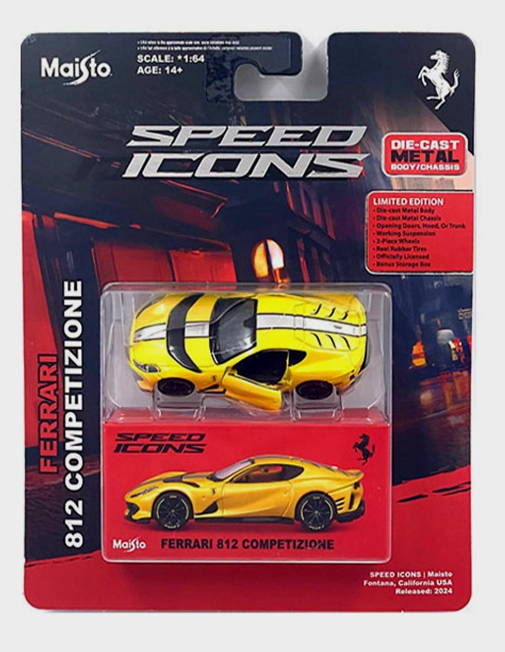 "The Maisto 1.64 Speed Icons Ferrari 812 Competizone Yellow is a must-have for any car enthusiast. With its iconic design and high-speed capabilities, this model captures the essence of the legendary Ferrari brand. Made with precision and attention to detail, this collectible is the perfect addition to any collection."